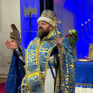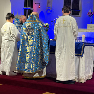 The chapel was bathed in soft blue light as the faithful gathered to celebrate the Nativity of the Holy Theotokos and the Elevation of the Holy Cross. From the very first hymn of entrance, lead by Metropolitan Raffaele and sung by the congregation with reverence, the evening was clothed in beauty and prayer.
