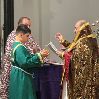 His homily continued with a message from Gandhi. Metropolitan Raffaele reported that Gandhi had said “the gospels of Jesus Christ are unique. I would love to be a Christian - but the way Christian’s treat one another is holding me back.” The Metropolitan reminded us that we have a responsibility to be the light in the world and be Christ to others. He prayed for us all and then the liturgy continued with the Kyrie sung by the clergy.