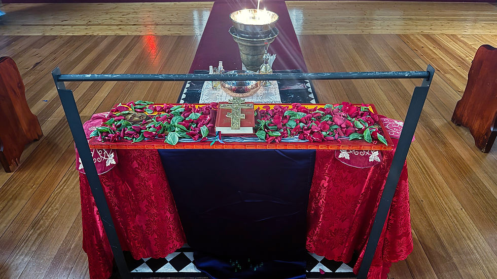 Upon returning to the centre of the church, Father Matthew covered the Epitaphios with rose petals and basil, symbols of love, honour, and the hidden victory of the Cross. The Gospel was then proclaimed, recalling the sealing of the tomb.