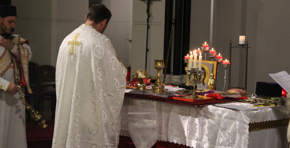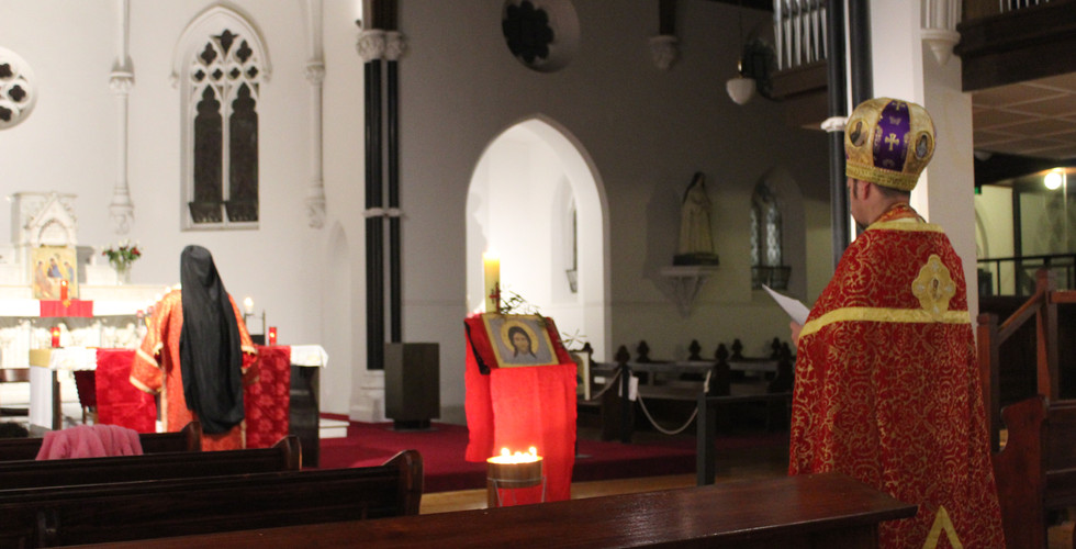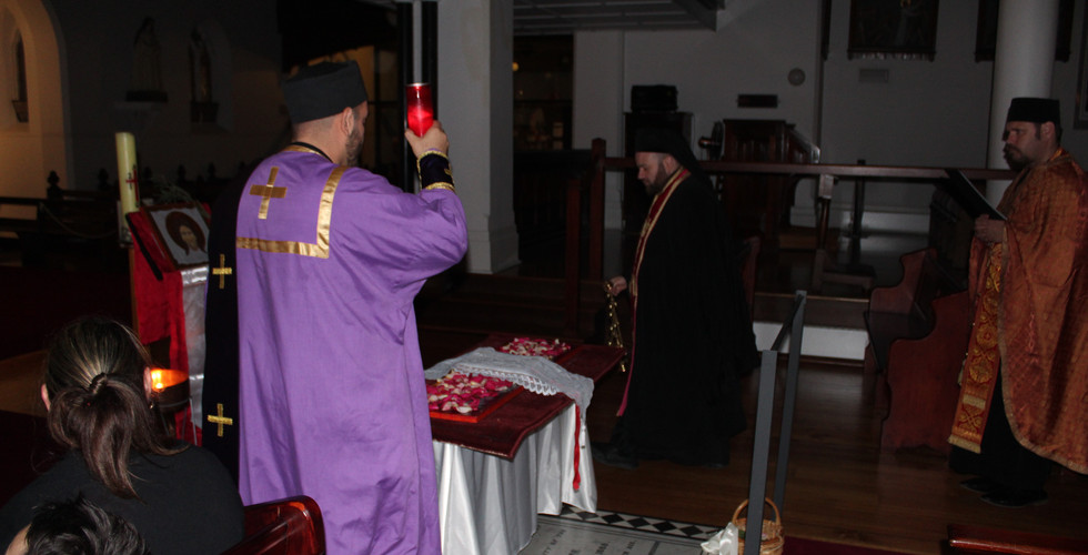 This was followed by the Burial Service where the Epitaphios of Jesus was anointed with Holy Chrism oil and covered with flowers. Then, a procession of the congregation, lead by Archdeacon Matthew, accompanied the Epitaphios around the building, from the altar to the centre of church. The Epitaphios was then shrouded and the people were invited to venerate it as Archbishop Raffaele sang lamentations. After some final prayers, the congregation were anointed with the newly blessed Chrism oil.