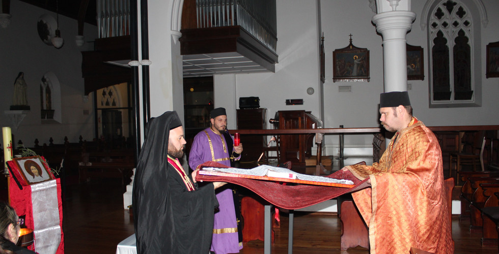 The service began with the opening prayers of the All Night Vigil. Father Mark did some readings before the Gospel according to St Mark was read by Archbishop Raffaele. The Archbishop gave his homily on the dangers of turning away from the True Faith, and how Jesus will always search us out and invite us into his heart.