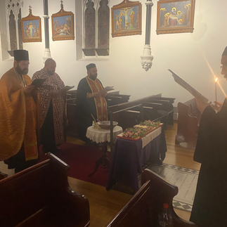 Next the mysteries were transfigured to the sounds of beautiful singing and chanting from the clergy. Then communion was shared by the clergy and with the congregation. Metropolitan Raffaele blessed the coloured eggs before anointing everyone and giving everybody a blessed egg. Finally, agape was shared amongst the people and much merriment and joyous conversation were had.