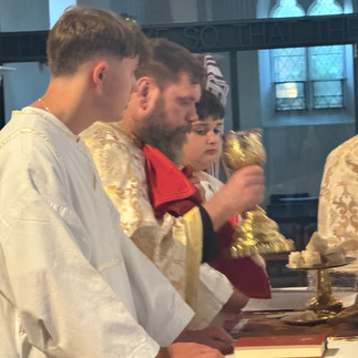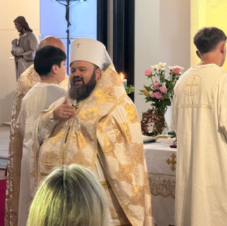 We then joined in the Common Prayer, followed by the Kyrie and Gloria, sung by Metropolitan Raffaele as incense was offered around the altar three times, rising like prayer before God.