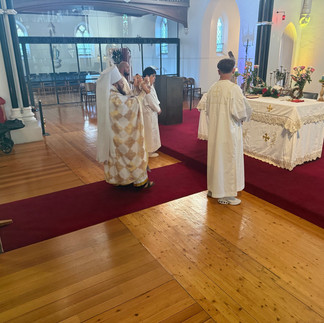 A radiant organ solo from Father Mark and a gentle play of light brought the celebration to a close, leaving hearts lifted and spirits warmed—before the community gathered for agape, the chapel now filled with heat, laughter, and joy.