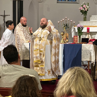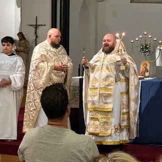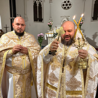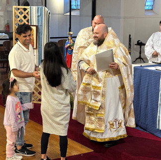 The congregation recited the Lord’s Prayer before the clergy sung the prayer acapella. Communion was shared by the clergy and then with the community. In gratitude for receipt of the Holy Mysteries, Metropolitan Raffaele sang the final hymn “Breathe On Me, Oh Breath of God” accompanied by Fr Mark on the organ.
