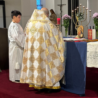 The liturgy began with a regal entrance hymn “Holy God, We Praise Thy Name”. After this, Metropolitan Raffaele explained that when Jesus was a babe, Mary and Joseph presented him to the temple. He explained that two doves were presented, as was tradition at that time. Then the Kyrie was sung, accompanied by Fr Mark on the organ.