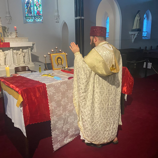 As the liturgy progressed, the beautiful voice of Metropolitan +Raffaele rang throughout the church., and the offerings were brought to the altar.