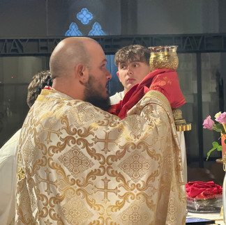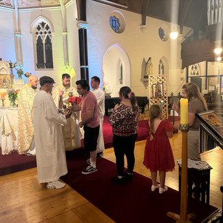 We also commemorated St Blaise, with the blessing of candles and the anointing of throats — prayers for healing and protection. After all had received Communion, we sang the Thanksgiving Hymn, and Father Mark blessed the candles and anointed the faithful.
