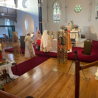 The celebrations began with the Blessing of the Waters, where Metropolitan Raffaele, Father Mark and Father Matthew blessed the Holy Water and re-consecrated the church and congregation by sprinkling the water to the four corners of the church. The people were then invited to fill their water bottles and drink from the Holy Waters.